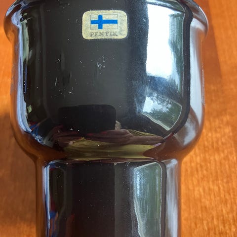 Kaunis ruskea–oliivi–musta kuviointi, ajalle tyypillinen käsinmaalattu ilme. Sopii hyvin sekä käyttöön että retrohenkiseen sisustukseen.