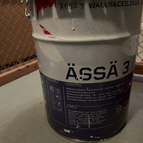 Ollut raksa-käytössä. Soveltuu tällaisenaan siihen mutta sisustus--käyttöön vaatii fiksausta.
