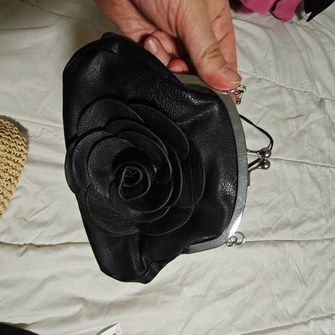 Myydään pois käyttämättömäksi jäänyt ja hurmaava samppanjan/beigen sävyinen ruusulaukku. Mitat ovat lähinnä suuntaa-antavat, koska muoto on pallomainen ja vaikea mitata. Mutta esim. 16x7,5 cm kännykkä (mitta ilman koteloa) tuohon laukkuun ei valitettavasti mahdu (laukun korkeus ei aivan riitä kun vetoketju on kaareksi muotoiltu ja kyljellään olevan puhelimen kulmat törröttävät ulkona). Mutta meikit, avaimet ym. kyllä mahtuu. Ja simpukkapuhelin tai muu pienempi malli. 😅