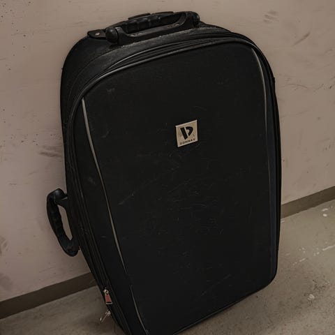 Iso musta matkalaukku/treenikassi. 70x35x30cm. Pari kertaa käytetty, muuten erinomainen kunto mutta pohjan vahvikelevy mennyt taitoksille säilytyksessä. Ison taskun lisäksi edessä ja molemmilla sivuilla vetoketjulliset taskut.