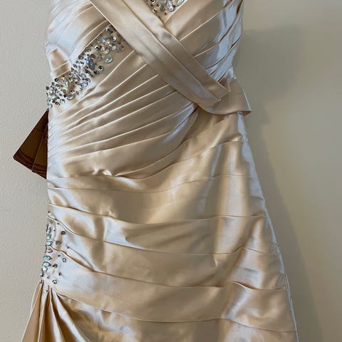 Garducci kaksiosainen juhla-asu. Lisäksi huivi kuuluu asuun. Asu on jäänyt täysin käyttämättä. Kokomerkintää ei ole, mutta koko on noin 34. Nyörit yläosan takana antavat hieman joustovaraa. Väri on tosi kaunis, mielestäni petroolin sininen. Pinta kauniisti kiiltävä. Arvelen materiaalin olevan viskoosia.