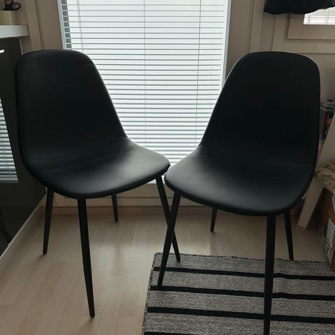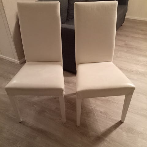 Myydään 6 kpl Askosta ostettua valkoista keinonahkatuolia metallijaloilla.