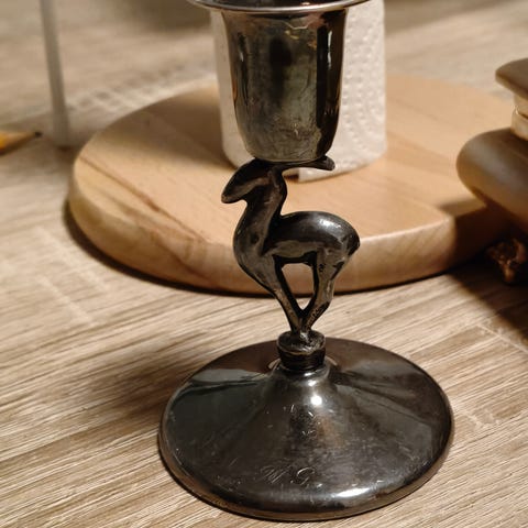 Metallinen kynttilänjalka mittarilla