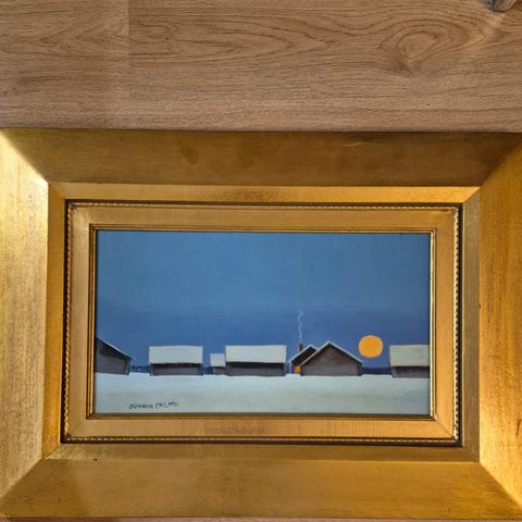 Ostettu Juhanilta galleriasta uutena ja ollut siitä asti. Hieno työ jossa syvät värit , virheetön öljyvärityö