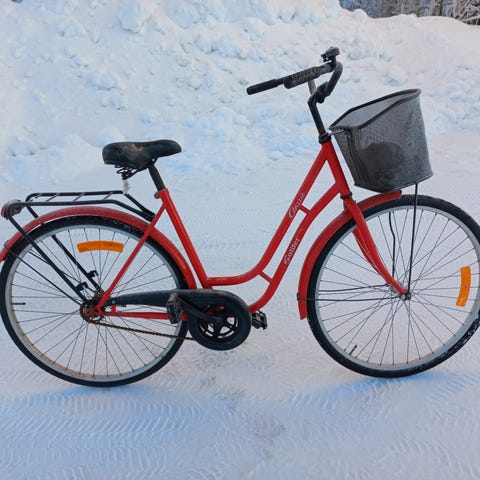 bicycle naisen naisten malli vaihteeton nastakumi nastat mummis mummomalli nastarengas jarrut tavarakori lamppu valaisin mummimalli r16