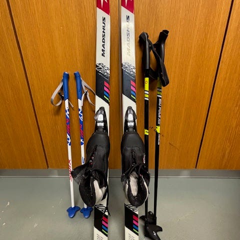 Perheen pienimmille sopivat muoviset sukset Ollut käytössä max. 5 kertaa.