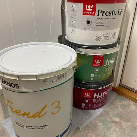 Avattuja maaleja erä, keskimäärim yli puolipurkkia jokaisessa jäljellä
