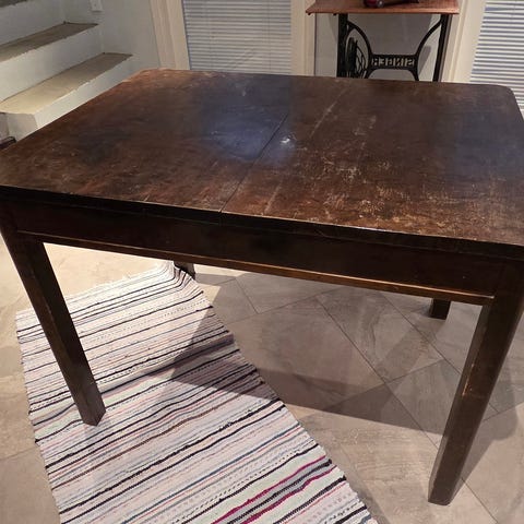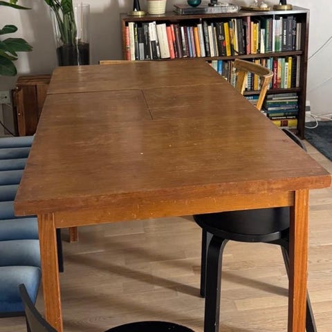 Jatkettava vanha pöytä 50 luvulta. Pituus levitettynä 123cm.