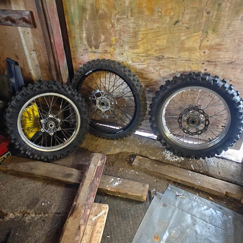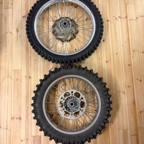 Ktm D.I.D merkkiset enska vanteet renkailla. Etu rengas tosi huonossa kunnossa takana taas hyvä. Ollut 2006 vuosimallin kotarissa. Vaihdossa voi ehdottaa kotariin sopivia supermoto vanteita
