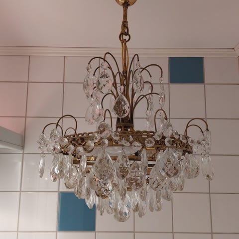 Myydään vanha kristallikruunu. Kaikki kristallit tallella.
