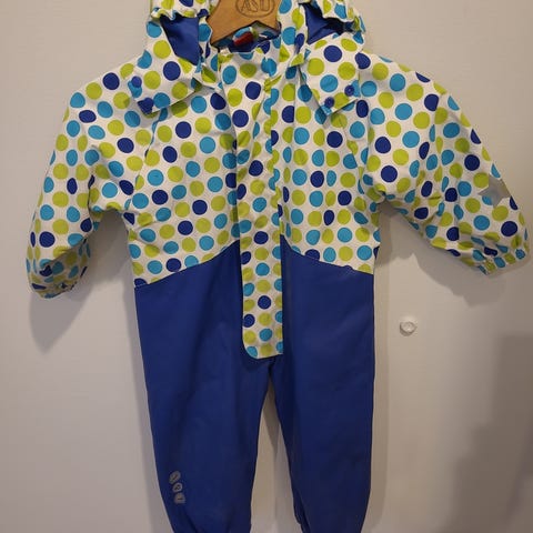 Söpö sadehaalari, koko 86. Kuvatessa huomasin polvessa pienen pintanaarmun (yritin saada kuvaan). Muuten siistissä kunnossa ja meillä pitänyt hyvin kuivana.