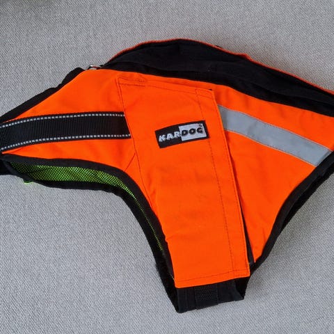 Vain kerran käytössä olleet. Liian pienet meidän mäykylle. Koko MK3. Meidän koiran mitat: Etujalkojen takaa 53cm, takajalkojen edestä 43cm, kaula 33cm, selän pituus 54cm. Housuosa menee, mutta liivi ei nuilla mitoilla lähellekään. Setti maksoi 118€