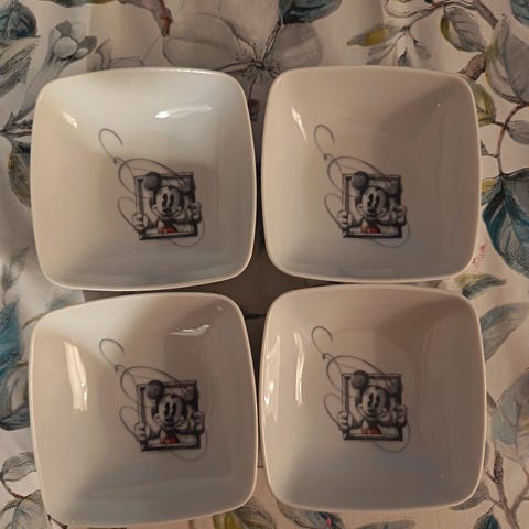 Myydään kaksi (2) kappaletta suosittuja ja keräilyarvoisia Fyrklövern-merkin Mikki Hiiri -kulhoja. Nämä ovat osa tunnetun Disney-taiteilijan Stefan Lindahlin suunnittelemaa astiastoa, jota ei ole enää saatavilla uutena.