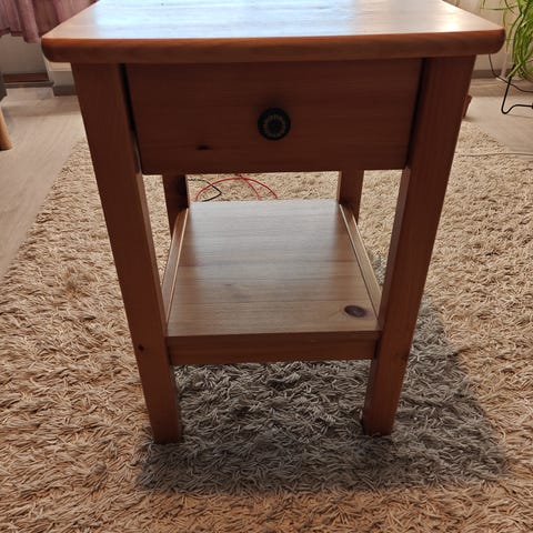 Puinen musta pöytä. Maalipinta nähnyt parhaat päivät ja rullat rikki. Voin ottaa rullat irti jos haluat. Ylempi taso 56 cm maasta. Alempi 32 cm