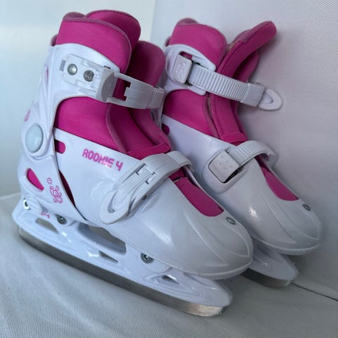 Ice Skate Rookie 4 lasten luistimet, koko 33-36, säädettävät. Värit valkoinen ja pinkki. Luistimet on säädettävissä kokoon 33-36. Materiaalina muovikuori ja pehmustettu sisäosa. Soveltuvat muun luistelun harrastamiseen.