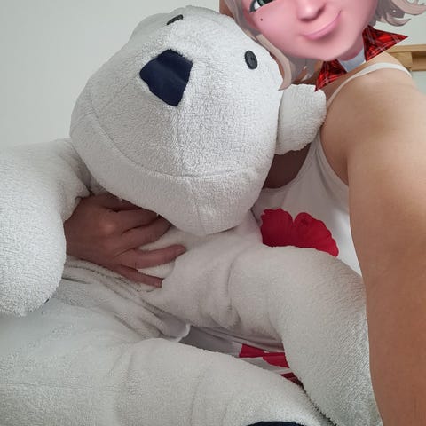 Jääkarhulla tuttipullo jota juo, heiluttaa tassuja, ääntelee, mutta hiljaa, ollut 20 v käyttämättä.