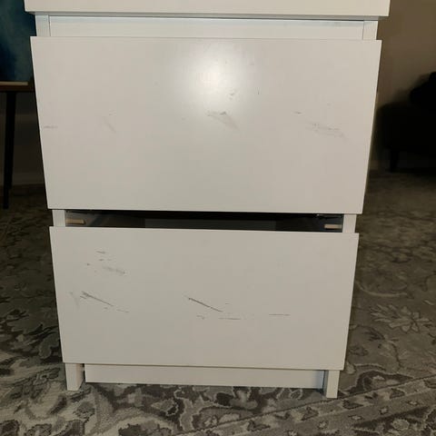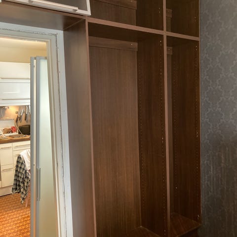 Ehjä kaappi, jossa toisella puolella lasihyllyt ja -ovet. 3.krs eikä hissiä, joten 2 kantajaa tarvinnee.