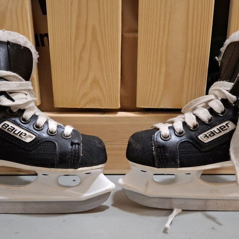 Lasten hokkarit kokoa 25. Sisämitta 16,4cm (kuva). Ostettu käytettynä ja teroitettu viime talvena. Teroituksen jälkeen käytetty 5-10 kertaa. Kunto hyvä mutta varpaiden kohdalta kangas kulunut. Savuton ja eläimetön koti.