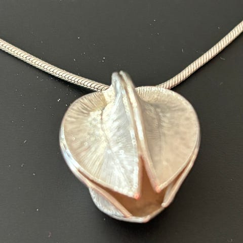 Myynnistä poistunut kolmen kukan malli. Käyttämätön, hopeinen koru. Kukat suuruudeltaan 22x20 mm ja ketjun pituus 50 cm.