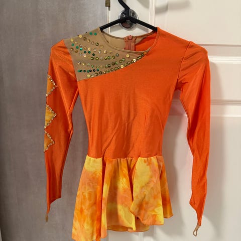 Kisoissa käytetty taitoluistelumekko, ollut kahdesti kisoissa päällä. Suunniteltu ja tilaustyönä tehty uutena yksilöllisesti kisoja varten. Koko arviolta 134-140cm. Puvun valkoinen väri kellastunut ja mekon sivussa pieni reikä hameessa, siitä kuva ilmoituksessa. Hyvin voi kuitenkin käyttää esim. harjoituksissa.