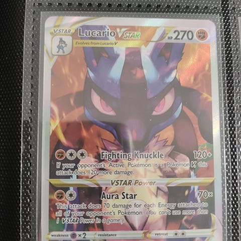 Tästä Lucario ex pokemon kortti jollekin. Kortti on hyvässä kunnossa ja ollut kansiossa kokoajan, mutta kuitenkin on pientä damagea tullut. (Lähetetään kirjeessä)