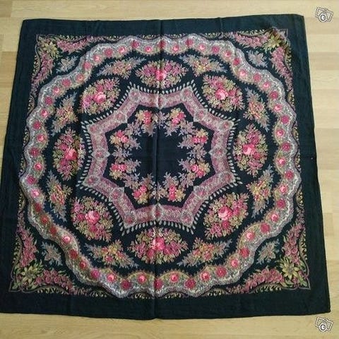 Vintage huivi. Erinomainen lämmittäjä talvi ilmoihin. Viininpunainen "maatuska" tyyppinen huivi. Pikaisesti mitattuna koko 120×120. Pientä ajanpatinaa, eivät haittaa käyttöä.( ei isompia reikiä tai tahroja. )