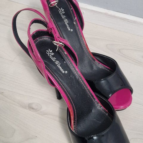 Korkokengät jotka joku on kaiketi maalannut itse? Motivaatio ei itsellä riitä näihin kun ovat aivan liian suuret itselle, koko 6. Vaatii siis fiksausta vaikka pystyy toki nytkin näillä liikenteeseen lähtemään.