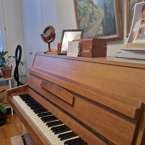 Annetaan säännöllisesti soitettu Rösler-merkkinen piano uuteen kotiin. Kaipaa viritystä (kuten muuton jälkeen muutenkin suositellaan) ja naarmuja saanut osakseen vuosien varrella, mutta vielä kelpo soitin harrastuskäyttöön. Ei ole kovin pahasti epävireessä eikä tuntuman mukaan ainakaan mikään ääni/kosketin ole rikki. Pidetty aina sisätiloissa, suojassa kostealta ja kylmältä. Tämä ollut pianon 2. koti.