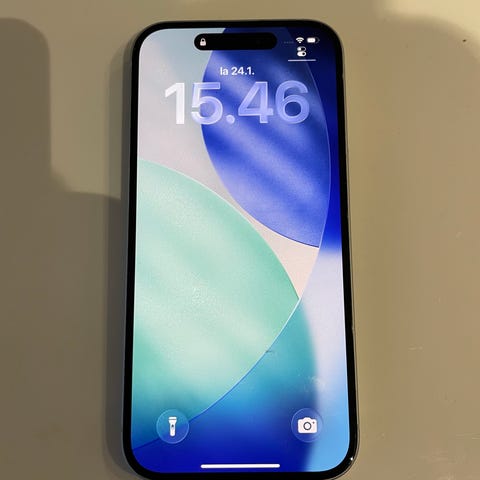 Hyvä kuntoinen iphone 15 mukaa suojakuoria laturin johto puhelin melko virheetön akku kestää hyvin
