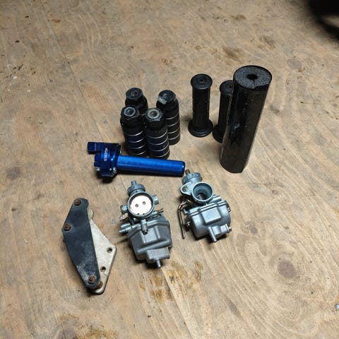 Siitä mm Wp 34,5cm takaiskari, derbi e3 sylintereitä, sähköjä, derbi syyliri, gilera smt etukatteet ja muutaki on nii ei muutaku kysymään