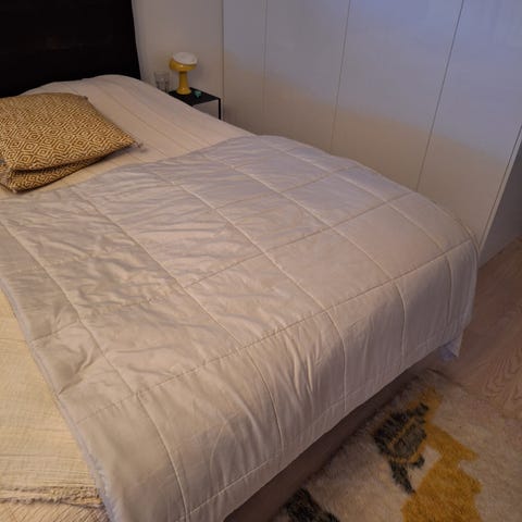Siisti ja puhdas vaalea päiväpeitto parisänkyyn. Kokonsa vuoksi postitus ei ole mahdollista, vain nouto.