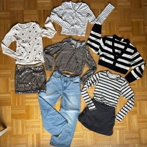 Vaatesetti koko 150-152cm. Mekkoja 2kpl, farkut (joustavat), hihaton pusero ja t-paita. Nouto tai 5e ja suuremmat ostokset voin postittaa. Halutessasi samaan toridiili- / postipakettiin voi kerätä useamman tuotteen ja maksaa ne kerralla, niin tulevat kaikki samassa paketissa. Laita viestiä torin kautta, jos haluat ostaa samaan pakettiin muuta.