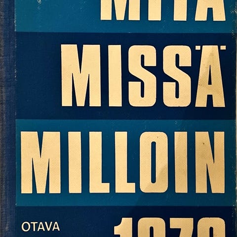 Myydään Mitä Missä Milloin (MMM) 1966 Kirjassa ajan tuomaa patinaa. Kannen selkä on joskus irronnut puoliksi ja se on aikanaan liimattu takaisin kiinni.