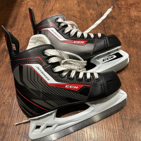 CCM jääkiekkoluistimet, lasten, koko 31. Mustat luistimet oransseilla nauhoilla. Ulkoista käytön jälkeä, mutta mainio käyttökunto.