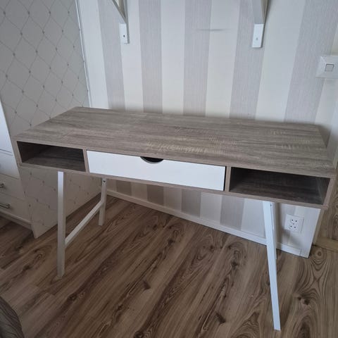 Hyvä kuntoinen työpöytä, tasossa pieni läpinäkyvä liimatahra. Myydän pois muuton alta.
