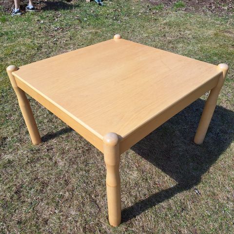 Yleisilmeeltään siisti Iskun sohvapöytä 80 x 80 x 36 cm, tukeva, keveästi liikkuu isoilla pyörillä. Pieniä vikoja havaittavissa, toinen pöydän kulmassa ja toinen pöydän pinnassa (niistä kuvat). Nouto Kempeleestä, jonne muuttanut lämpimään varastoon. :)