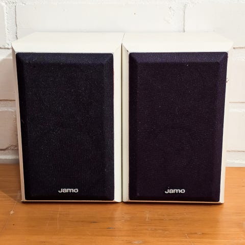 Kuvien hyväkuntoiset upeaääniset Jamo S 406 kaiuttimet.