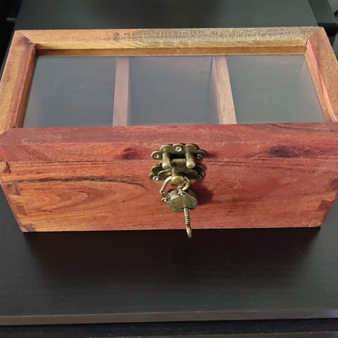 Kaunis puulaatikko, mitat 57 x 30 x 23cm. Käytön jälkiä, ks kuvat. Nouto Espoo Kalajärvi (tai Leppävaara arkisin klo 11-12).