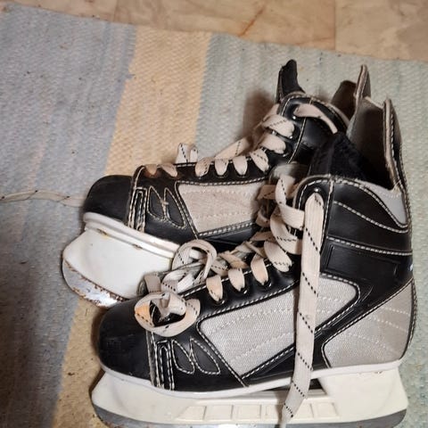 Käyttökunnossa olevat mustat hokkarit seuraavalle luistelemaan opettelevalle.