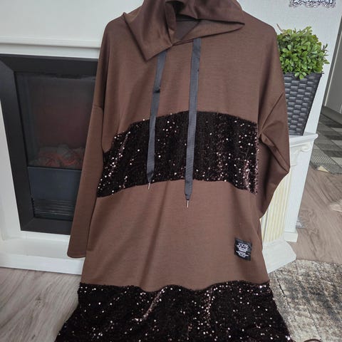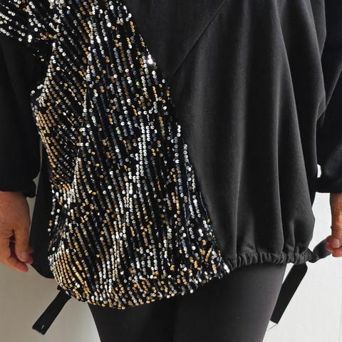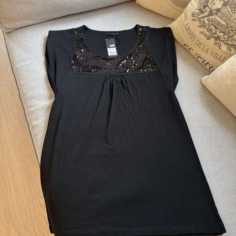 Musta paljettitunika, pitkä. XXL. Kai-kai 60 cm, pituus 110 cm. Kangas joustaa.