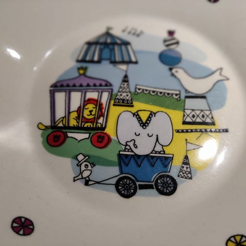 Kuvan astiat. Pilvi-lautaset pysyvät tukevasti pöydässä kiinni. Hyväkuntoiset.