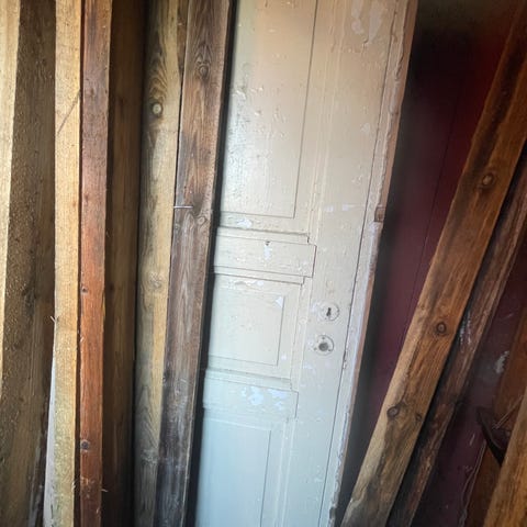 Mänty peiliovi karmeilla 79x209 15€. Savulasovi karmeineen 69x185 15€