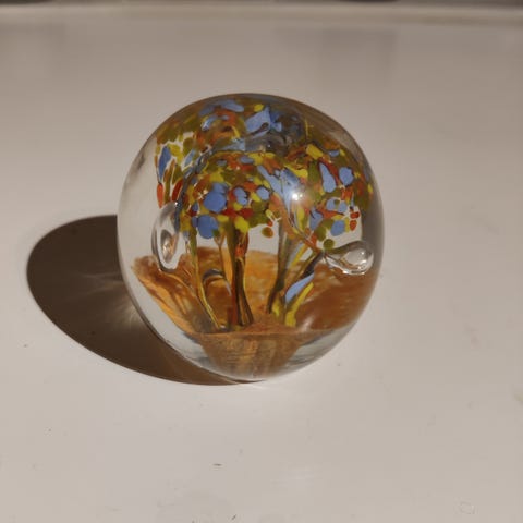 Taidelasi: leppäkerttu - paperipaino. Pohjassa Finnair -tarra. Ei mitään tietoa suunnittelijasta, mutta Finnairille suunnitellut mm Oiva Toikka ja Sarpaneva.