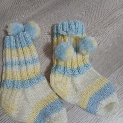 Sonicin kuvalla olevat villasukat (jalkapohjan mitta 19cm). Ja hamahelmistä tehty Sonicin pää.