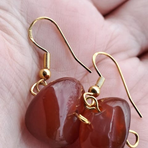 Nämä ovat näyttävät mutta kevyet korvakorut, jotka sopivat niin arkeen kuin juhlaan. Karneolin sanotaan symboloivan elinvoimaa ja rohkeutta.