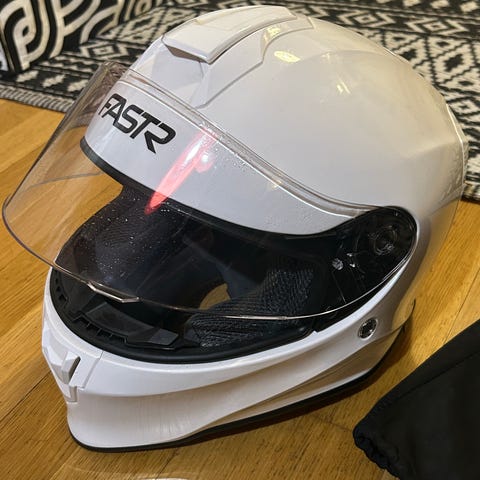 FASTR kypärä harmaassa värissä, koko 57-58 cm. Kypärä ostettu pari vuotta sitten motonetistä ja ollut erittäin vähällä käytöllä, sillä oli käytössä vain kyytiläisen kakkoskypäränä. Kuittikin tarvittaessa löytyy. Ajaa asiansa erittäin hyvin. Itsellä myynnissä XL kokoinen musta kypärä myös, jos haluaa samalla molemmat ostaa.