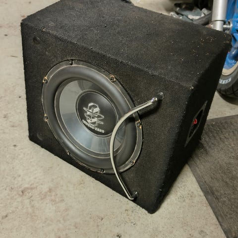 Hertz SX 2500L SPL Show subwoofer 2kpl, toinen palanut, tiedä saako näihin renconea enää. Kotelo noin 100L, vino takaseinä mitat L 80cm S 40/25cm ja K 58cm. Kyljessä terminaali. Refleksiputket 10cm/ täyspitkät 30cm, liian lähellä takaseinää näitä ehkä lyhennettävä. Viriä en tiedä..
