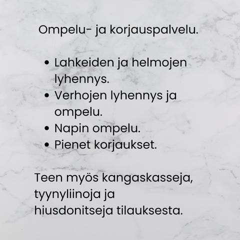Ompelu ja vaatteiden korjaus, kaikenlaisia tilauksia otetaan:-)