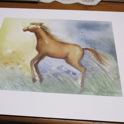 Ihana sininen hevostaulu vuodelta 1976. Takana kaksi kiinnityskoukkua. Haku Porista tai postitus ostajalle.