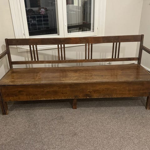 Kaunis vanha avattava puusohva. Patjan lisäämällä saa mukavan istuskelusoffan.